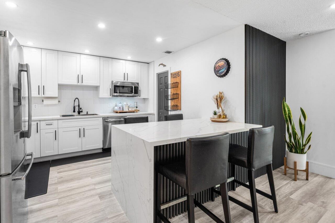 Step into this exceptionally bright, fully renovated 2-bedroom, 2-bath home designed with both style and functionality in mind. The stunning kitchen showcases a quartz waterfall countertop, stainless steel appliances, a closet pantry, and a spacious island perfect for entertaining or everyday living. The oversized primary suite offers incredible versatility, currently doubling as a home office. Featuring a walk-in closet along with a spa-inspired bath complete with dual sinks and a luxurious ste...Step into this exceptionally bright, fully renovated 2-bedroom, 2-bath home designed with both style and functionality in mind. The stunning kitchen showcases a quartz waterfall countertop, stainless steel appliances, a closet pantry, and a spacious island perfect for entertaining or everyday living. The oversized primary suite offers incredible versatility, currently doubling as a home office. Featuring a walk-in closet along with a spa-inspired bath complete with dual sinks and a luxurious step-in shower with waterfall showerhead. The guest bedroom includes a wardrobe-style armoire for exceptional storage, the guest bath is with a step-in shower, sliding glass doors, built-in bench, and a modern light-up mirror. Enjoy outdoor living in the spacious, fully fenced courtyard patio. This home is perfect for relaxing or entertaining plus the added convenience of an EV charger for modern living. Bright, modern, and truly move-in ready this home checks every box.